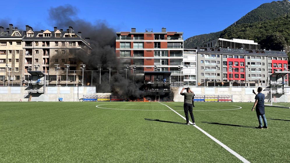 The blaze is thought to have started when sparks from welders working on the gantry. Op de dag voor de WK-kwalificatiewedstrijd Andorra - Engeland is er brand geweest in het nationaal stadion van Andorra. The stadium which has an artificial pitch has a capacity of around 3300 and has been Andorras home since 2016 when the principality switched from playing their games in Barcelona.